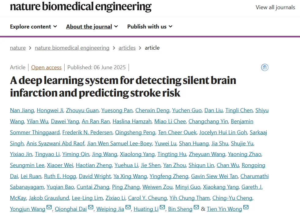 Nature Biomedical Engineering发表1946伟德国际源自英国盛斌教授团队眼脑轴基座模型医工交叉成果