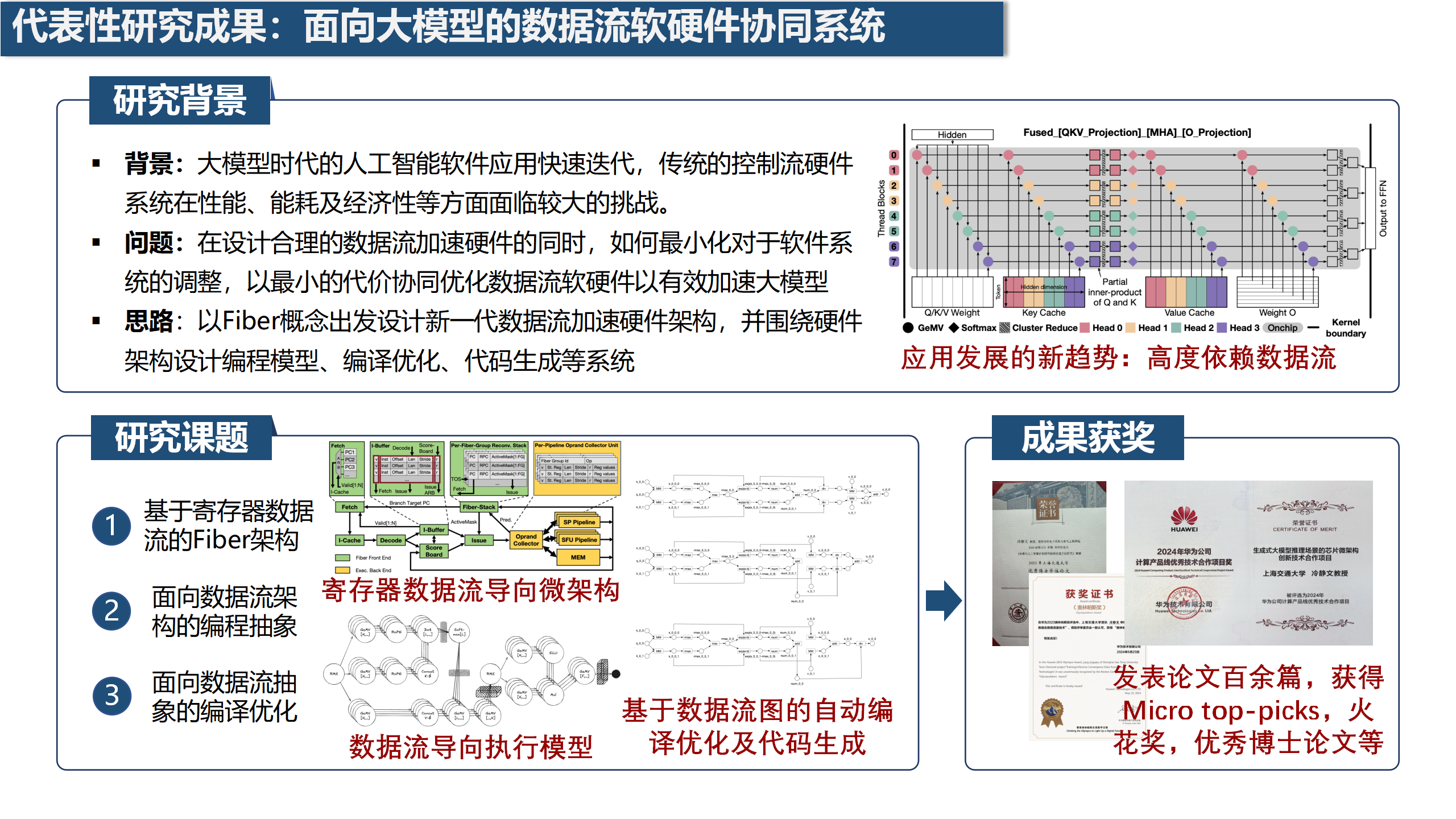 先进计算研究所聚焦 “先进计算机体系结构与系统领域” 开展产学研工作,通过 “基础研究 - 技术研发 - 产业应用 - 人才培养” 的闭环体系,将产学研深度融合,解决先进计算机体系结构与系统领域的核心科学问题,为国家重大工程和产业升级提供关键支撑,为推动我国从 “计算大国” 向 “计算强国” 迈进贡献力量。获2019年度国家技术发明奖二等奖1项、获2024 年度上海市自然科学一等奖、2020 年度教育部科技进步一等奖、2018年度上海市技术发明奖一等奖,获2021年度CCF自然科学一等奖、2024年度CCF技术发明一等奖。