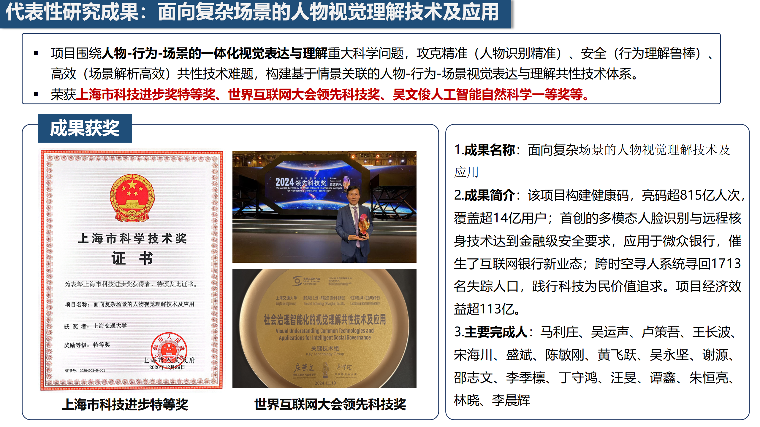 计算机应用研究所主要开展计算机视觉、图象图形处理、具身智能与空间智能、计算机图形与可视媒体、虚拟现实与大数据可视化、知识管理与软件工程、Web搜索与挖掘、语音识别和语音大模型构建、移动学习、情感计算等方向的研究。针对这些方向,该所在马利庄所长(教授)的领导下,组建由教授、副教授组成的高水平研究团队,团队成员相关研究成果多次获得国家自然科学基金重点课题、重大项目课题、国家科技部重点研发计划、国家973与863等科技项目支持,并获得国家教学成果奖、国家科技进步奖、上海市科技进步奖特等奖、吴文俊人工智能自然科学奖一等奖、中国图象图形学学会科技进步奖一等奖等奖项。